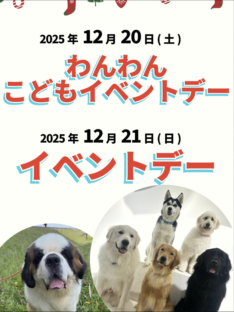 12月のイベントDayはセントバーナードのオリト君をゲストに迎え、年齢制限なしのこどもデーも開催します!